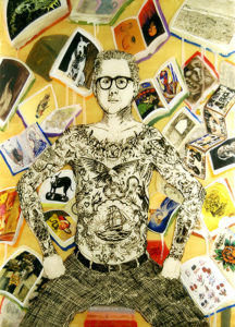 oil painting on resin with chine collé and mylar